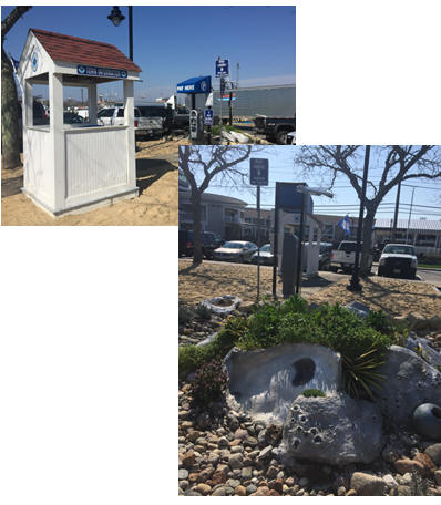 Enlarged oyster shells, beach grass and sand helped transform the parking island into a beach island where guests can get a shell at the Welcome center to sign a greeting and have it placed within the “dune” area.